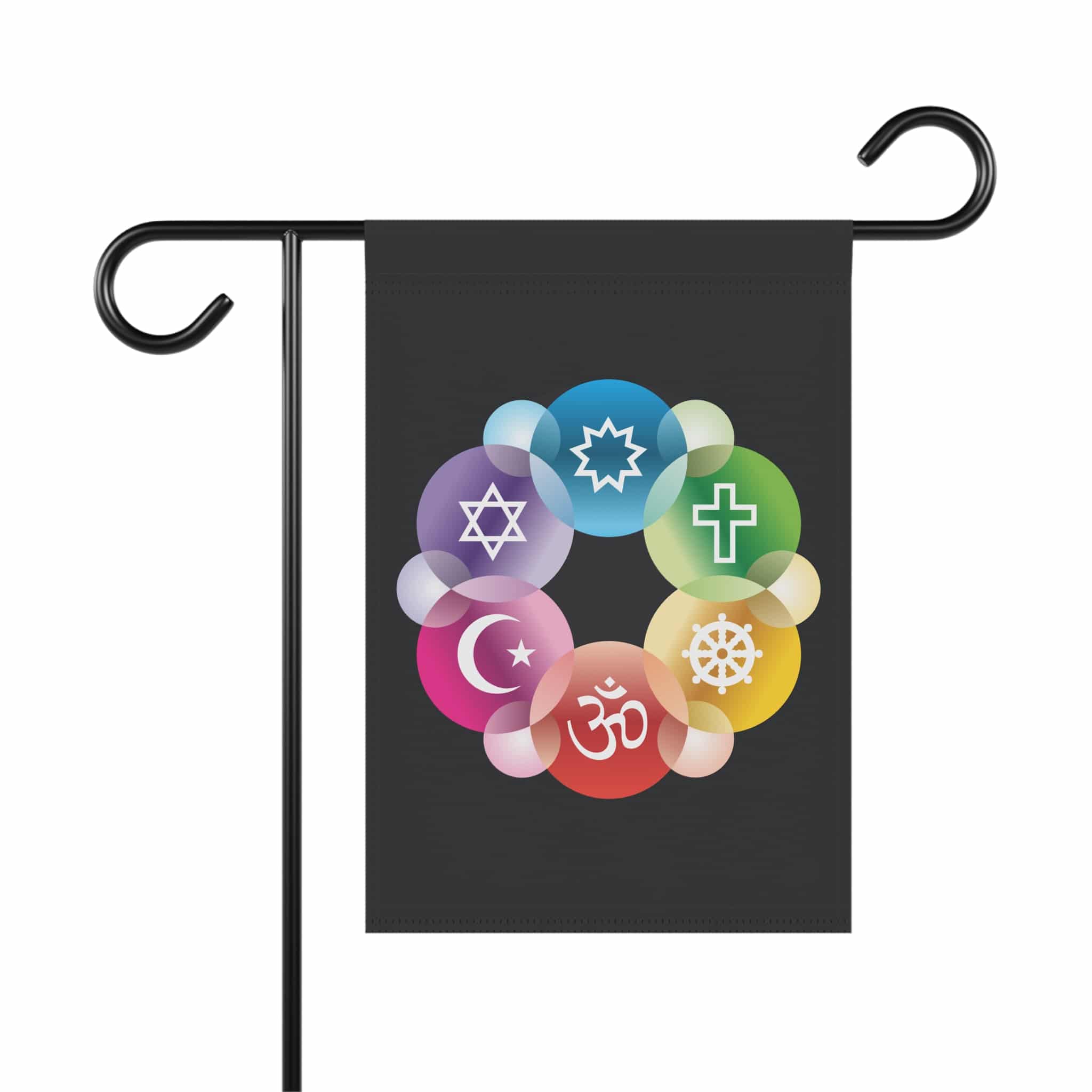 Beautiful Interfaith Flag with Six Religious Symbols, 12″ x 18″