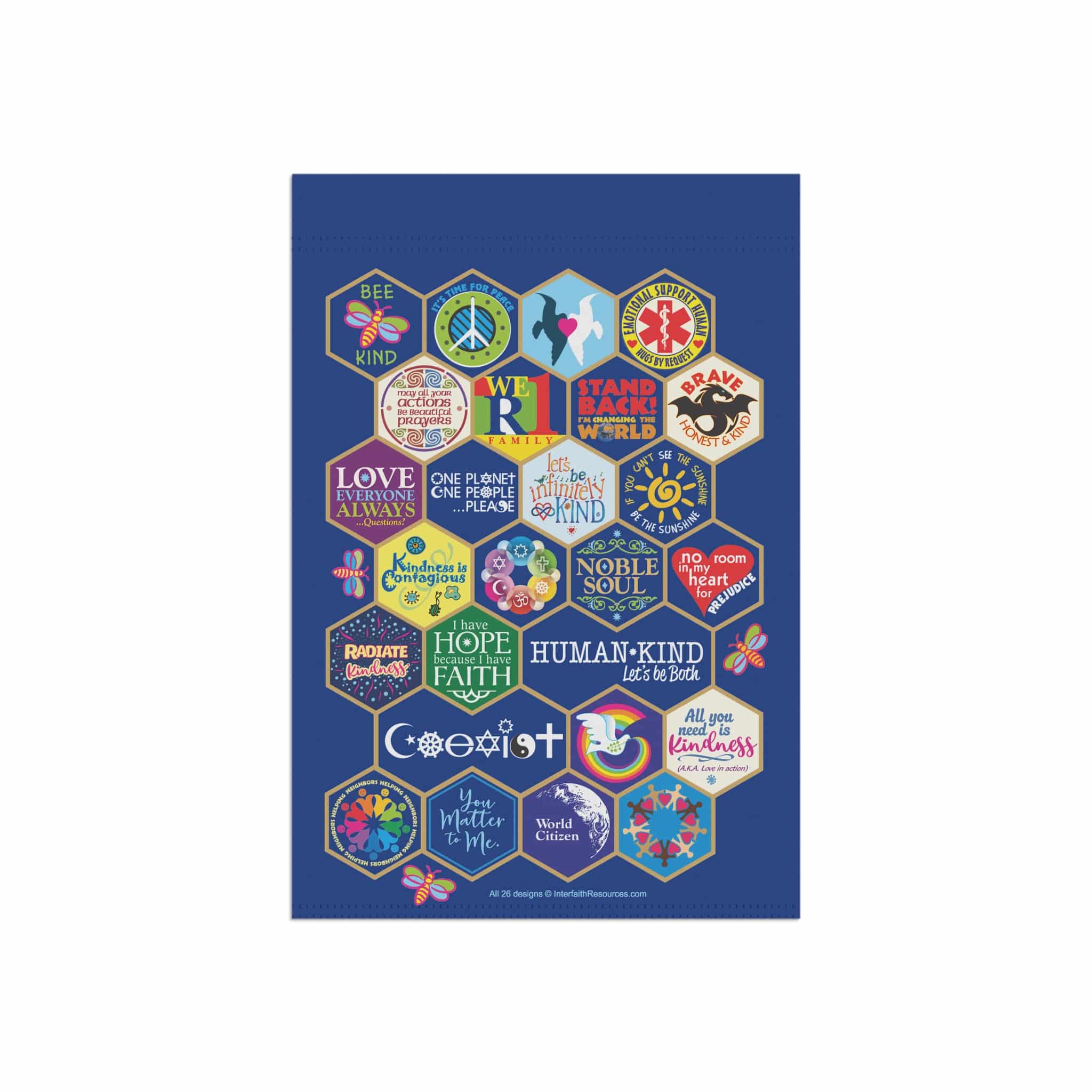 The design incorporates 25 (for the large flag) or 26 (for the garden flag) of our most popular design themes in a honeycomb quilt pattern. This has been extremely popular as a T-shirt and zipper hoodie, where it is printed on the back. These represent just a few of the 100+ unique designs we offer individually on a variety of other products – including other flags. All designs are copyrighted.