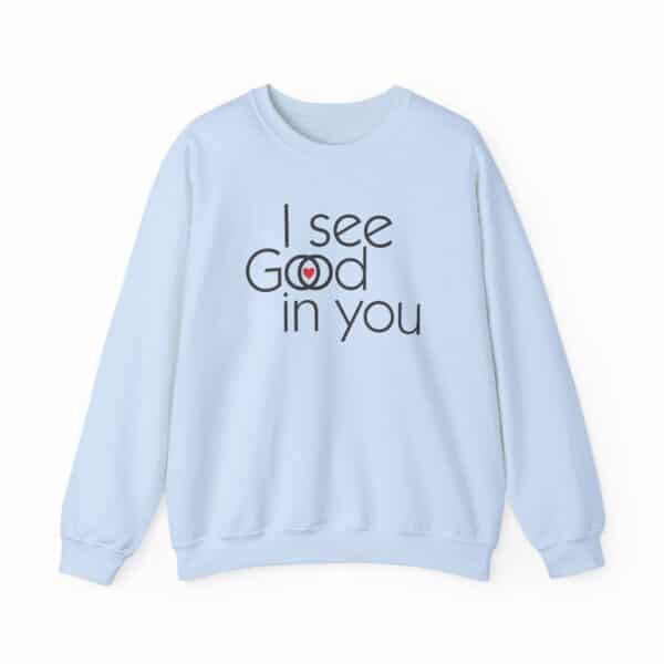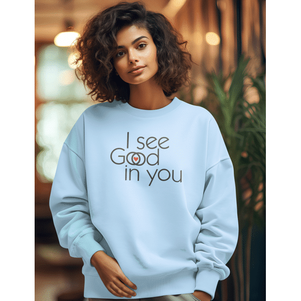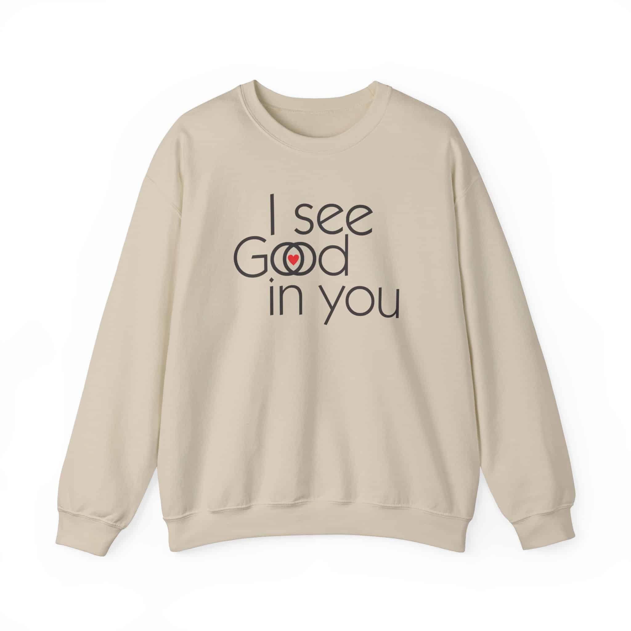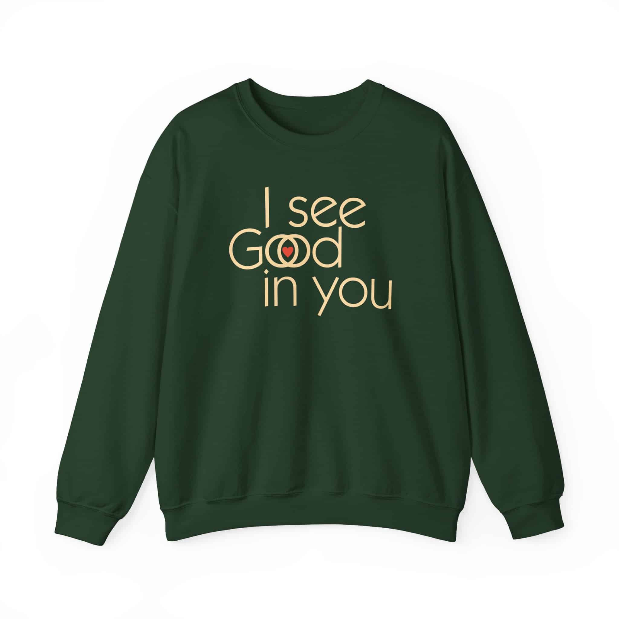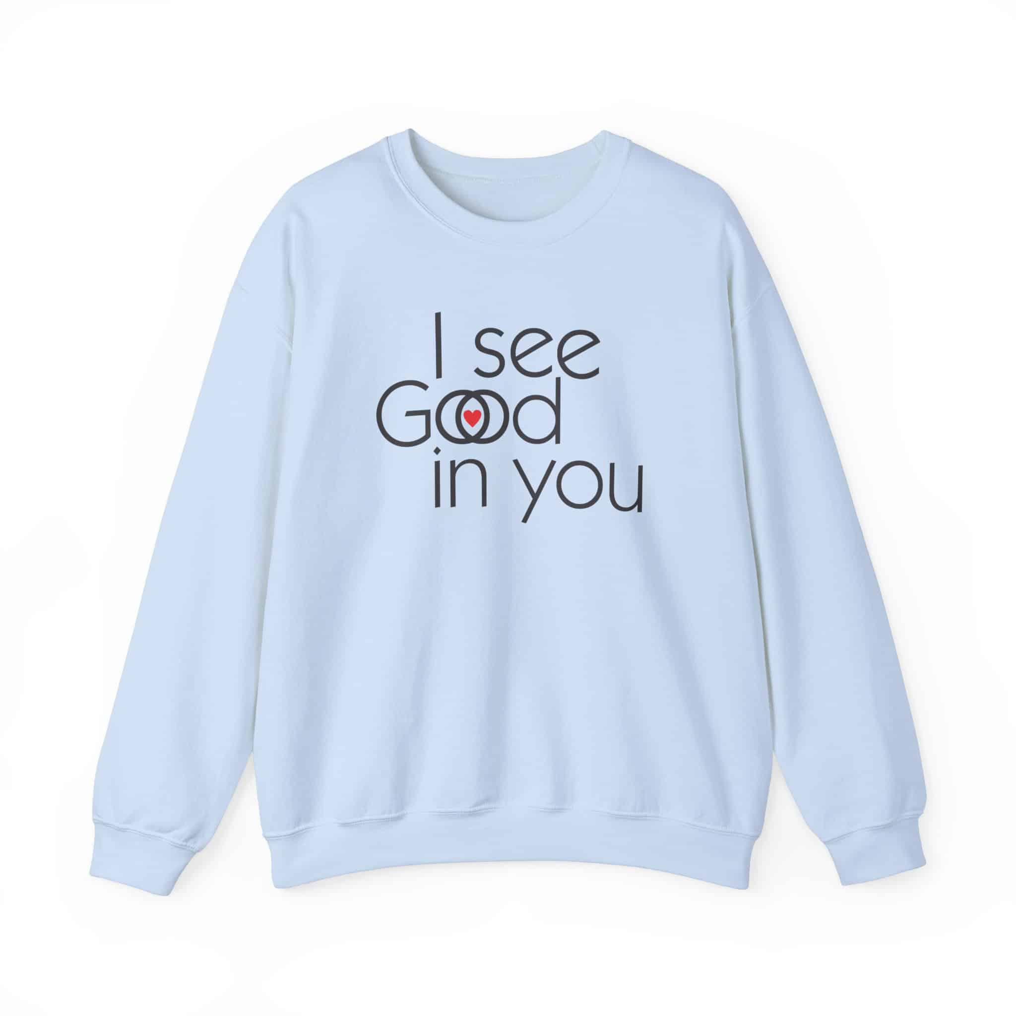 This shirt is an interesting Rorschach test . Some will see “I see good in you.” Some will see “I see God in you,” and a special few will see both. They are all good. (They are all of God.)