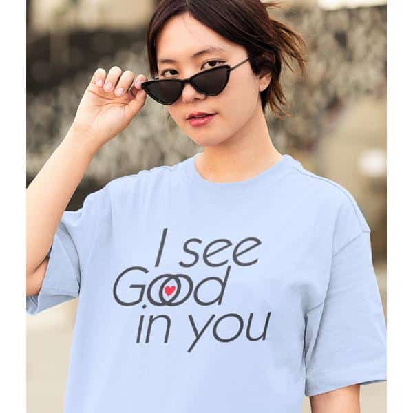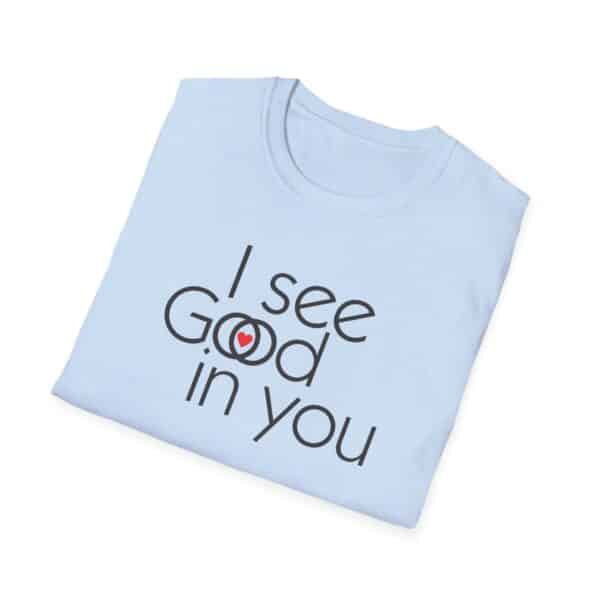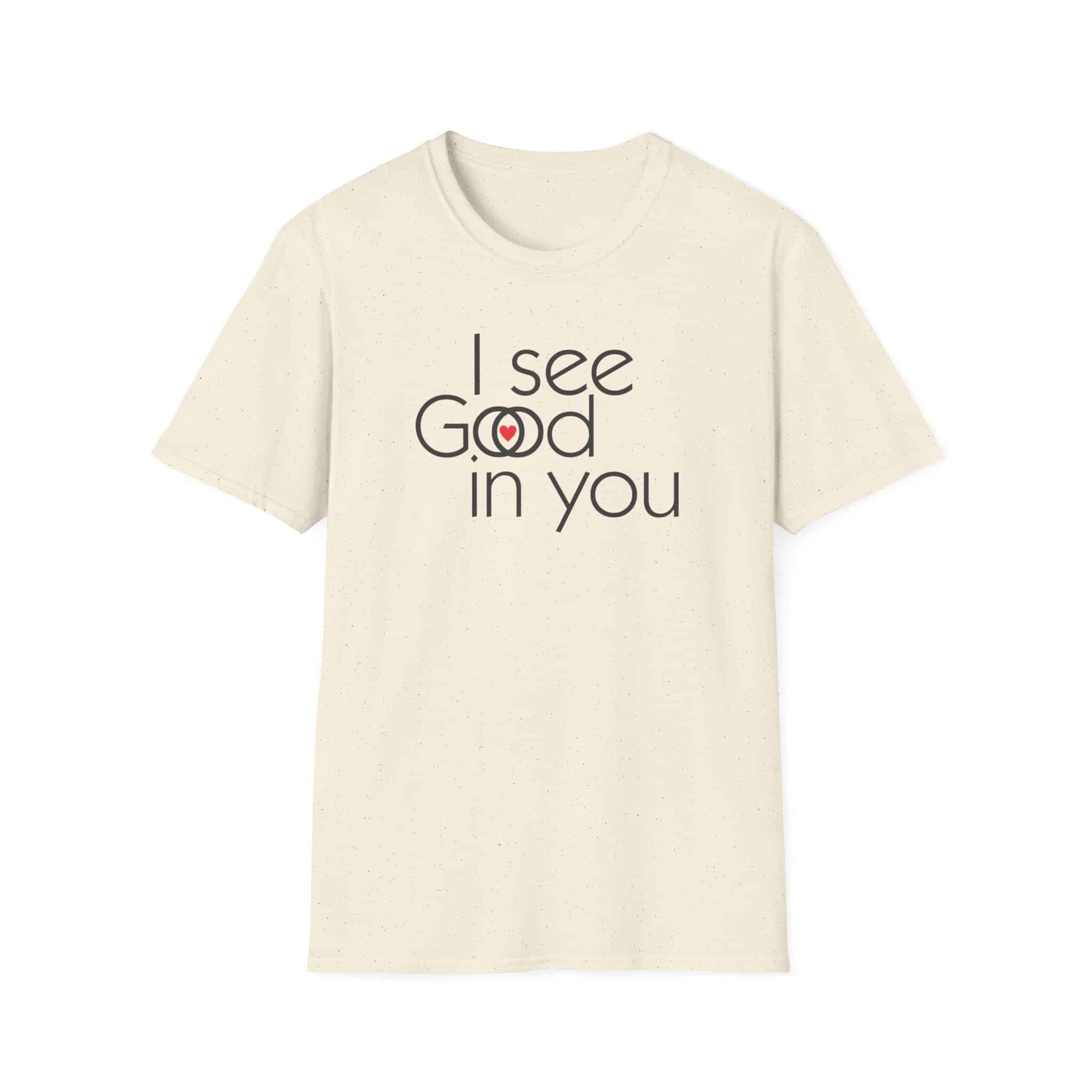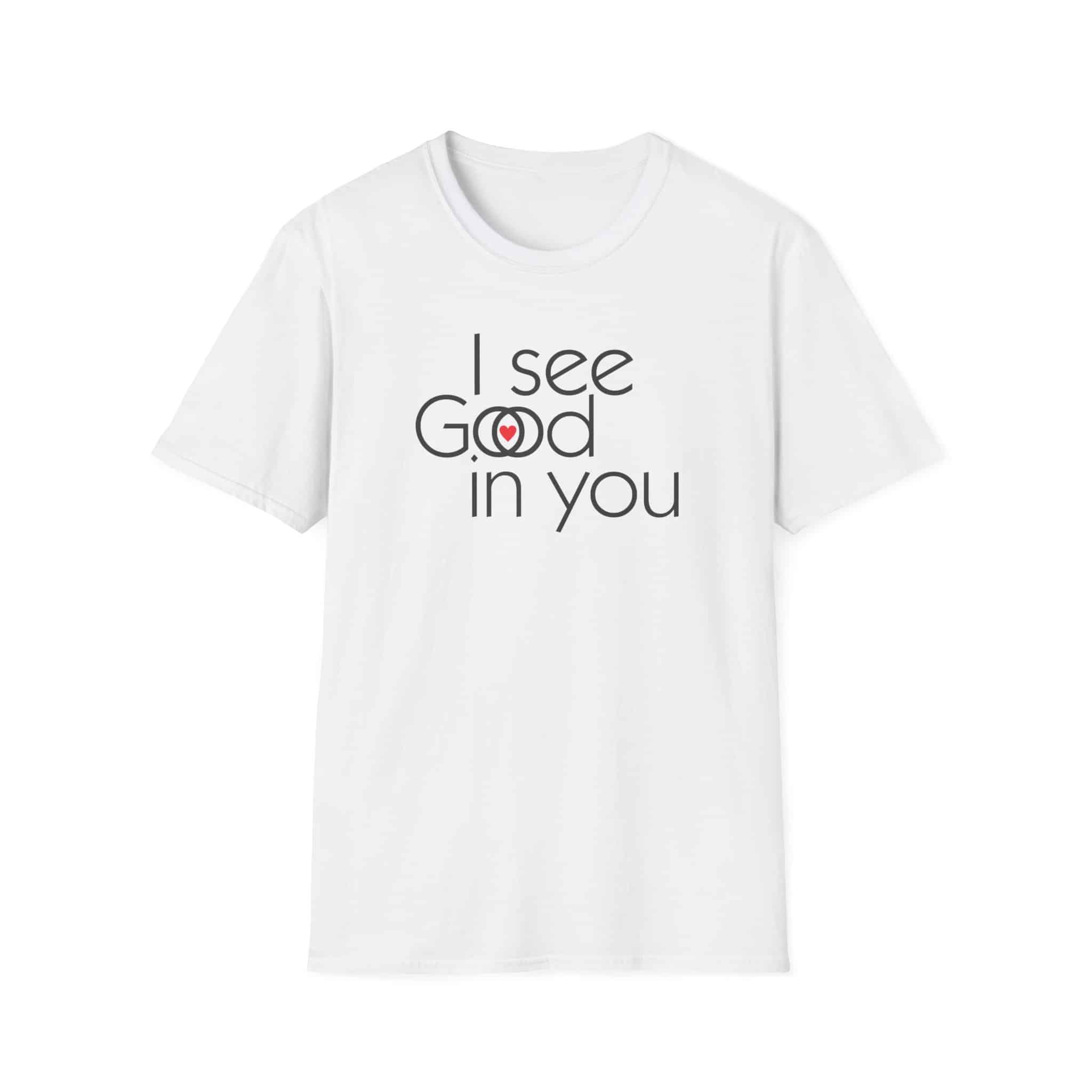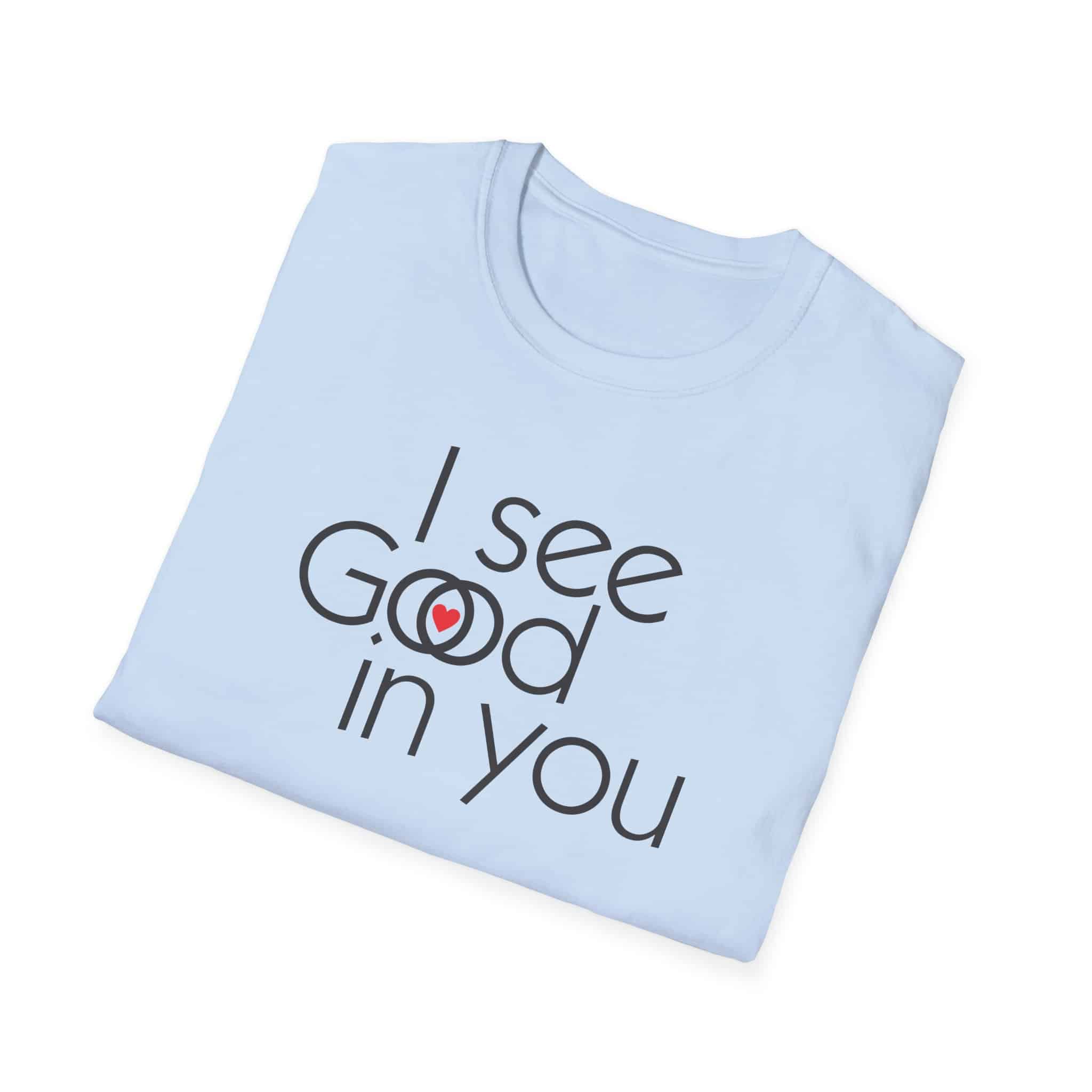 This shirt is an interesting Rorschach test . Some will see “I see good in you.” Some will see “I see God in you,” and a special few will see both. They are all good. (They are all of God.)