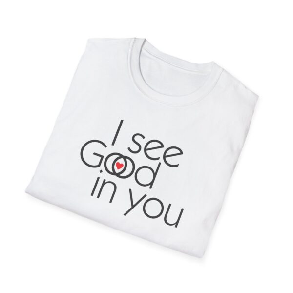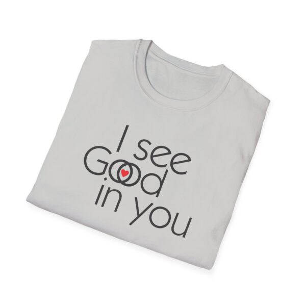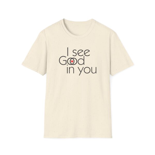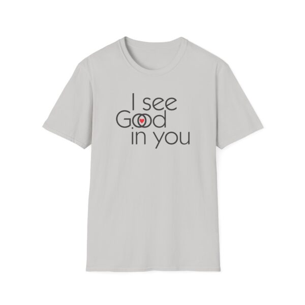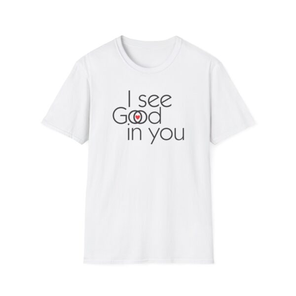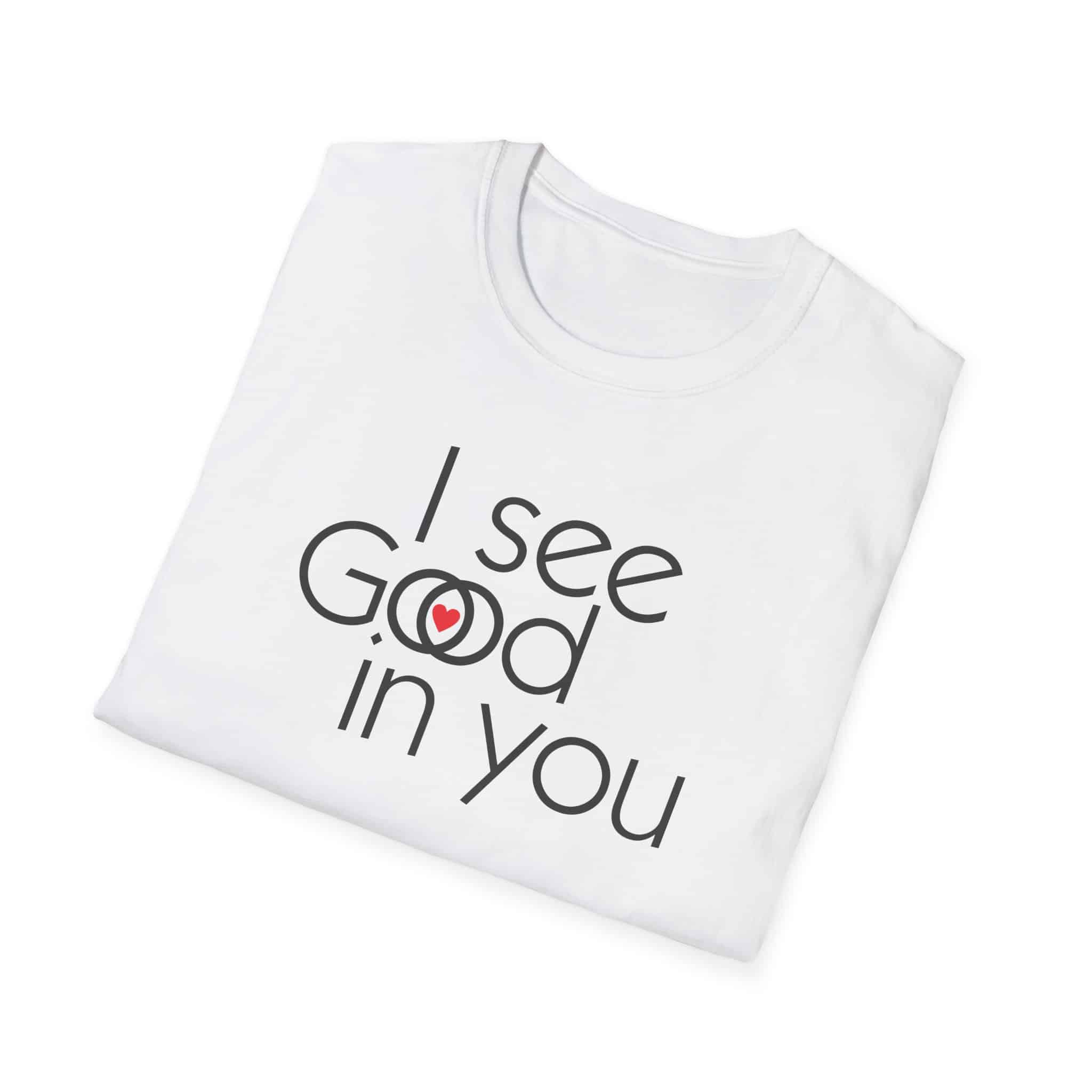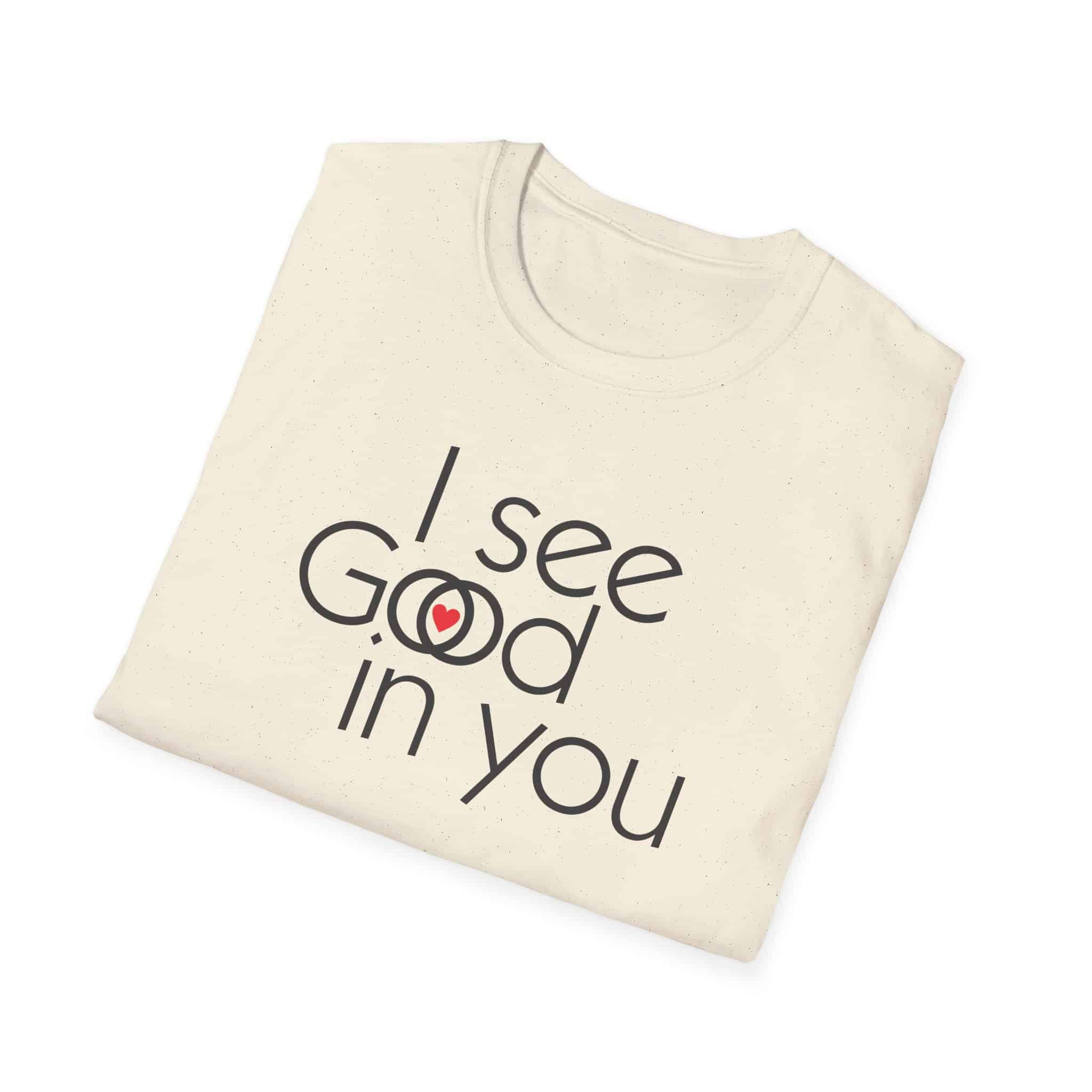 This shirt is an interesting Rorschach test . Some will see “I see good in you.” Some will see “I see God in you,” and a special few will see both. They are all good. (They are all of God.)