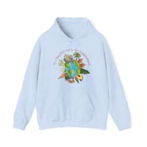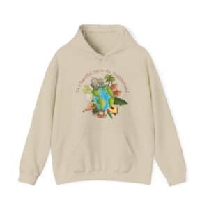 This charming design, using artwork by Charity Elise and a friendly phrase made popular by Mr. Rogers is a cute and subtle way of reminding people that the whole world is one big neighborhood. It combines the sentiments of our “Love Your Neighbor” design with our “World Citizen” and “Earth One Home” designs but with a sweeter, softer approach.
