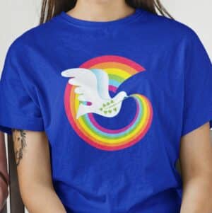 This shirt presents the idea of living prejudice-free in a simple bold graphic that is instantly understandable. It coordinates with dozens of our other race unity materials, from yard signs to teaching cards to tattoos.