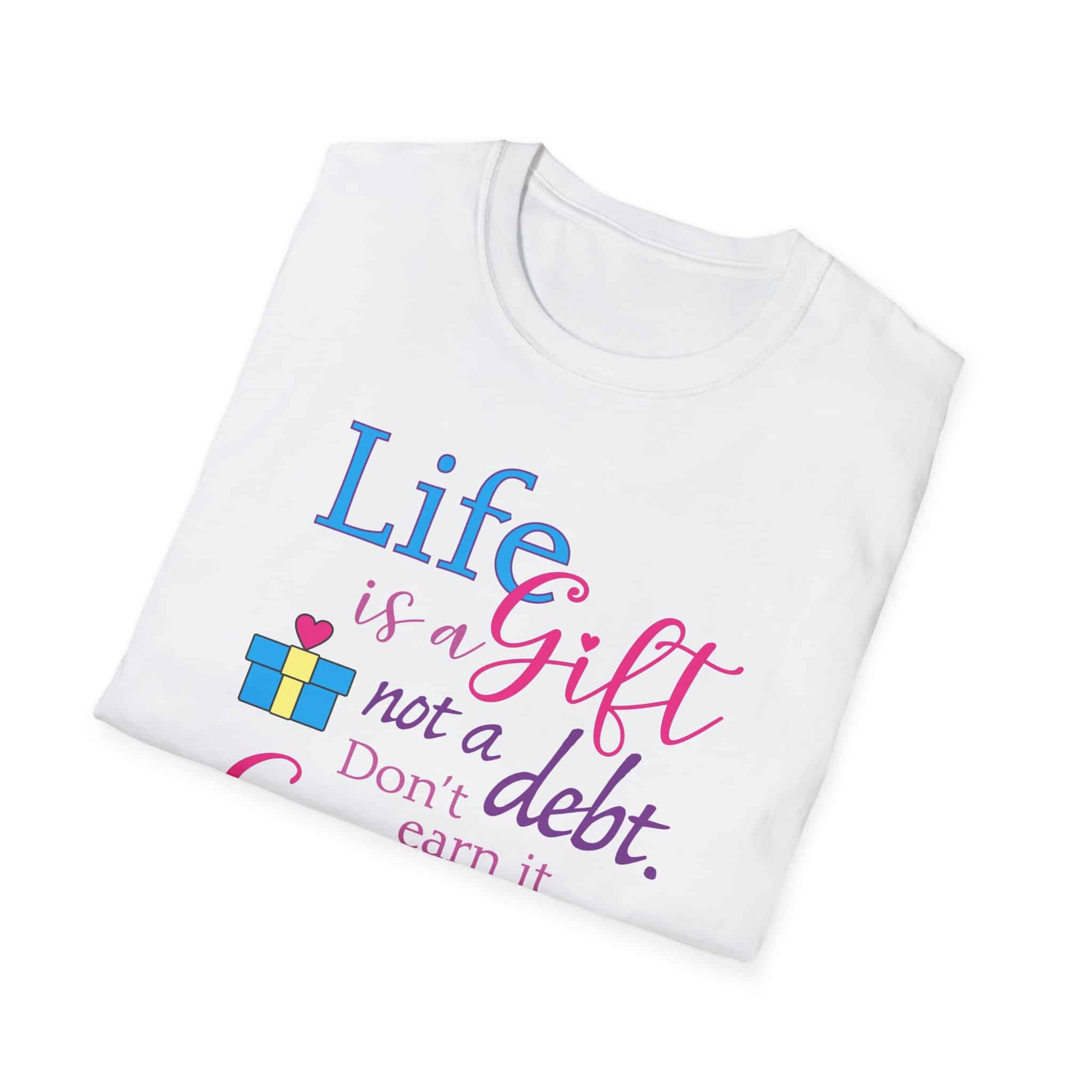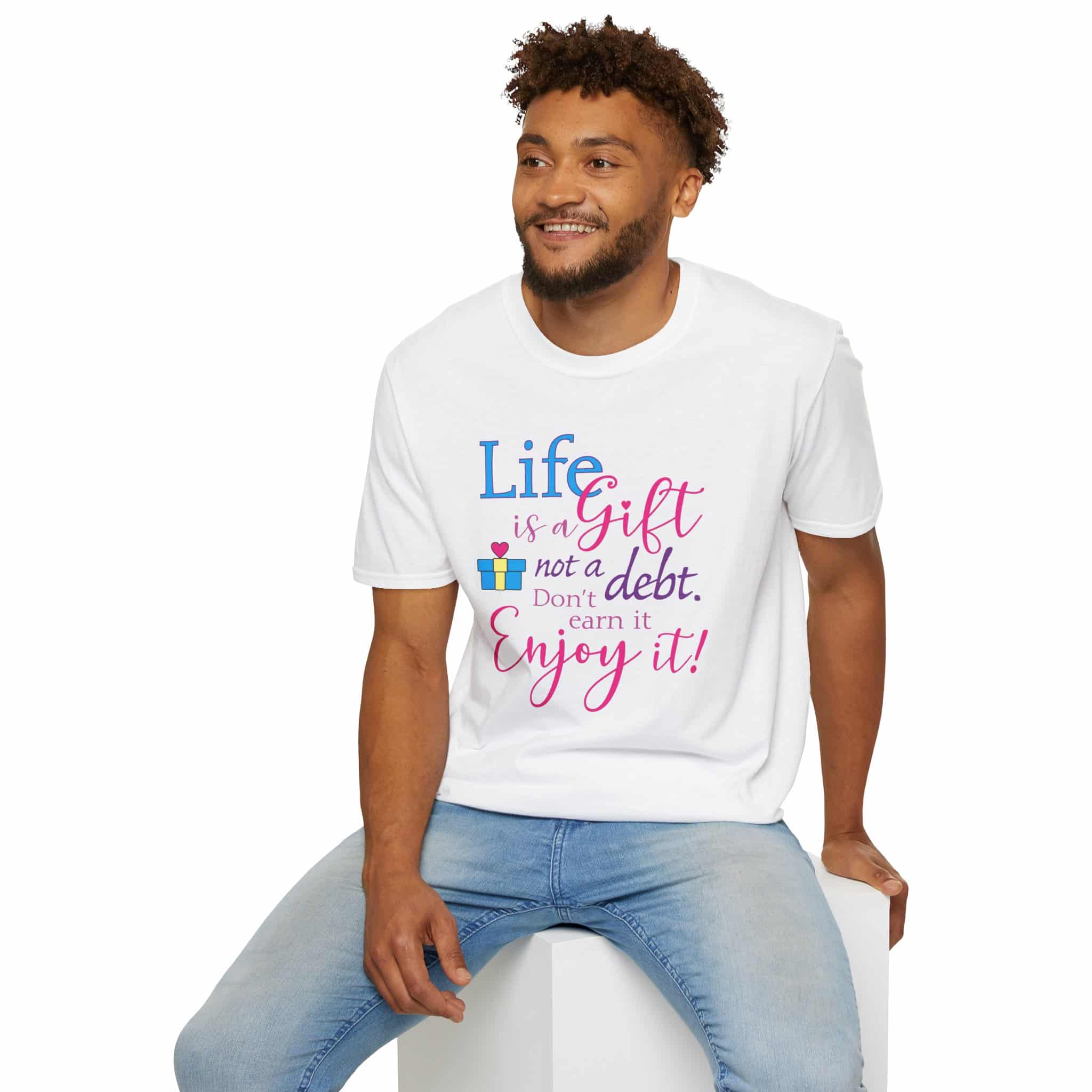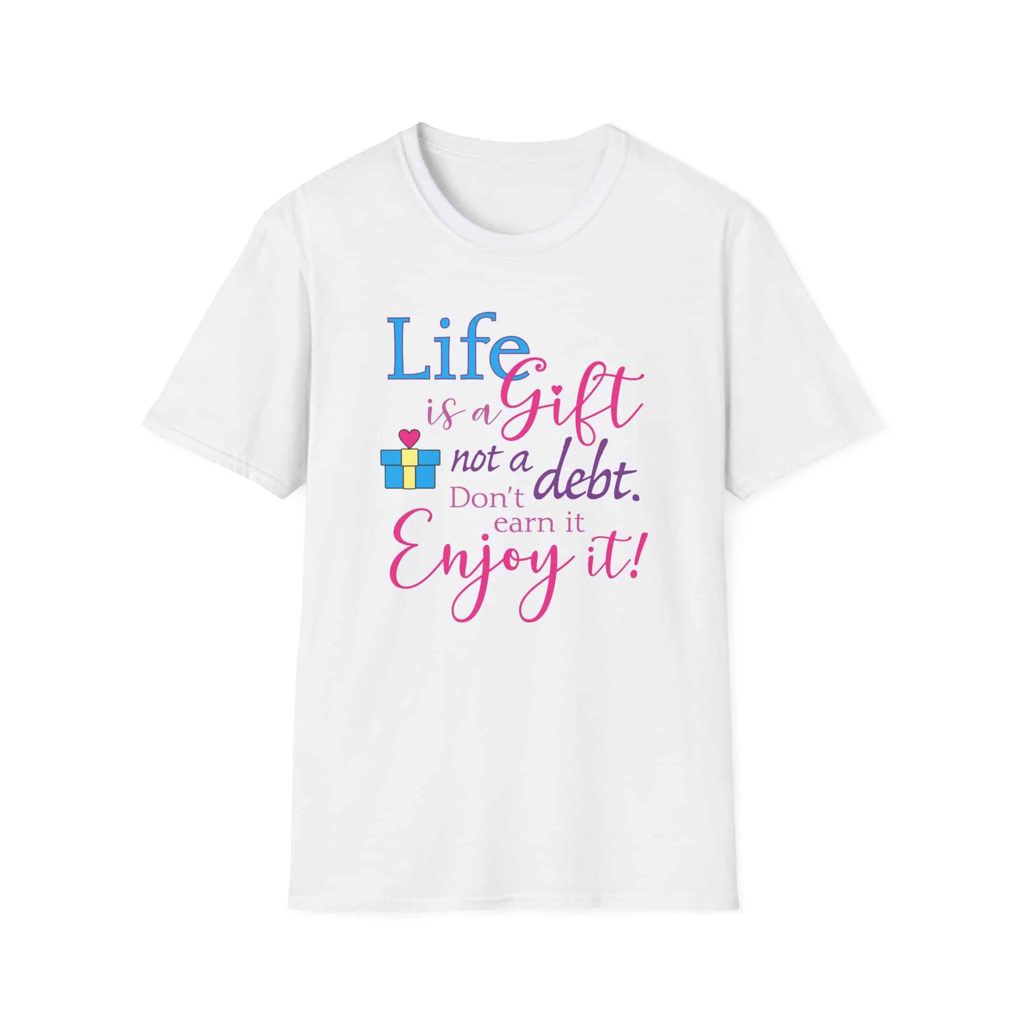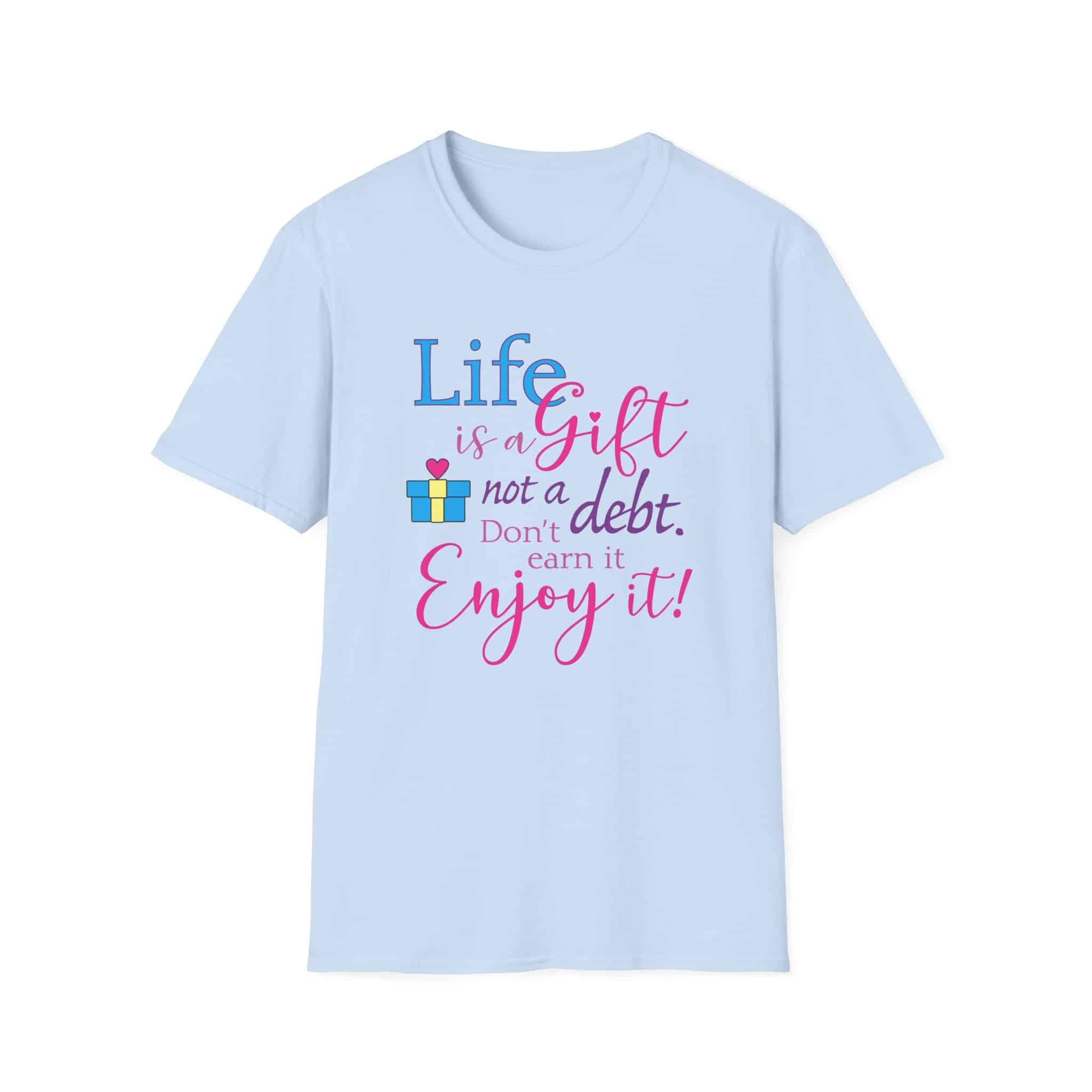 Wear this shirt as a reminder: life is meant for joy, not guilt; for happiness, not self-abasement. Spread the word.
