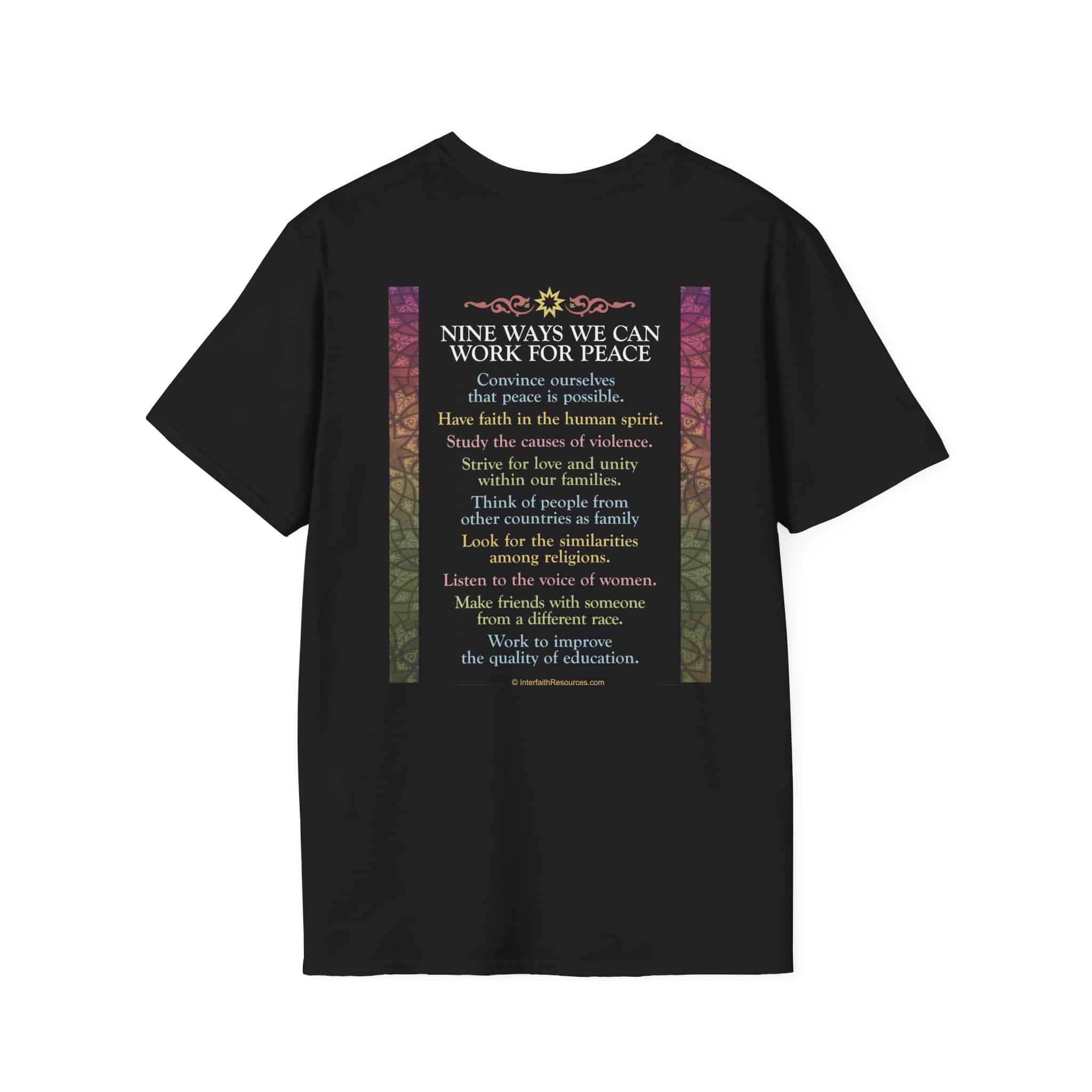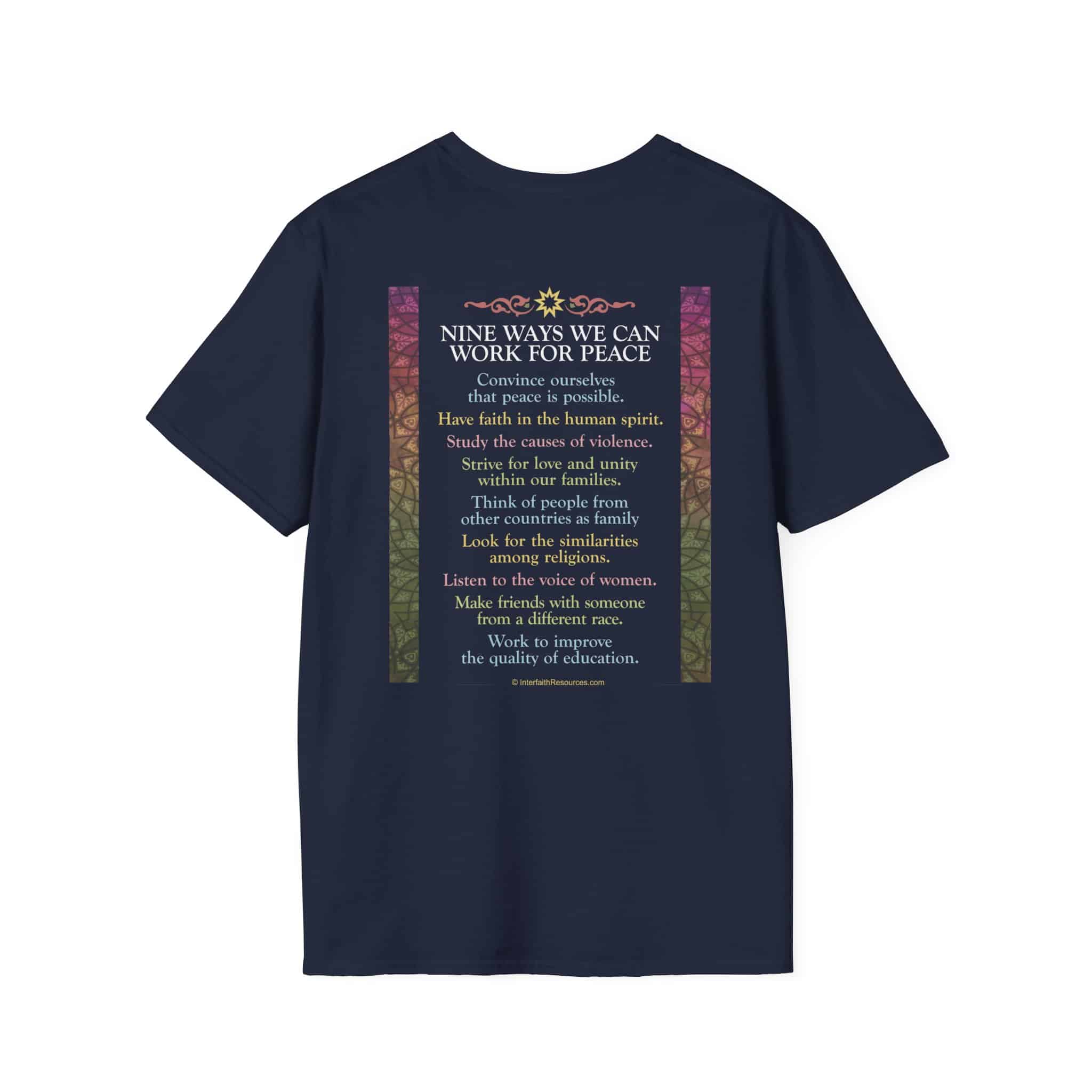 Nine Ways to Work for Peace T-Shirt – two versions