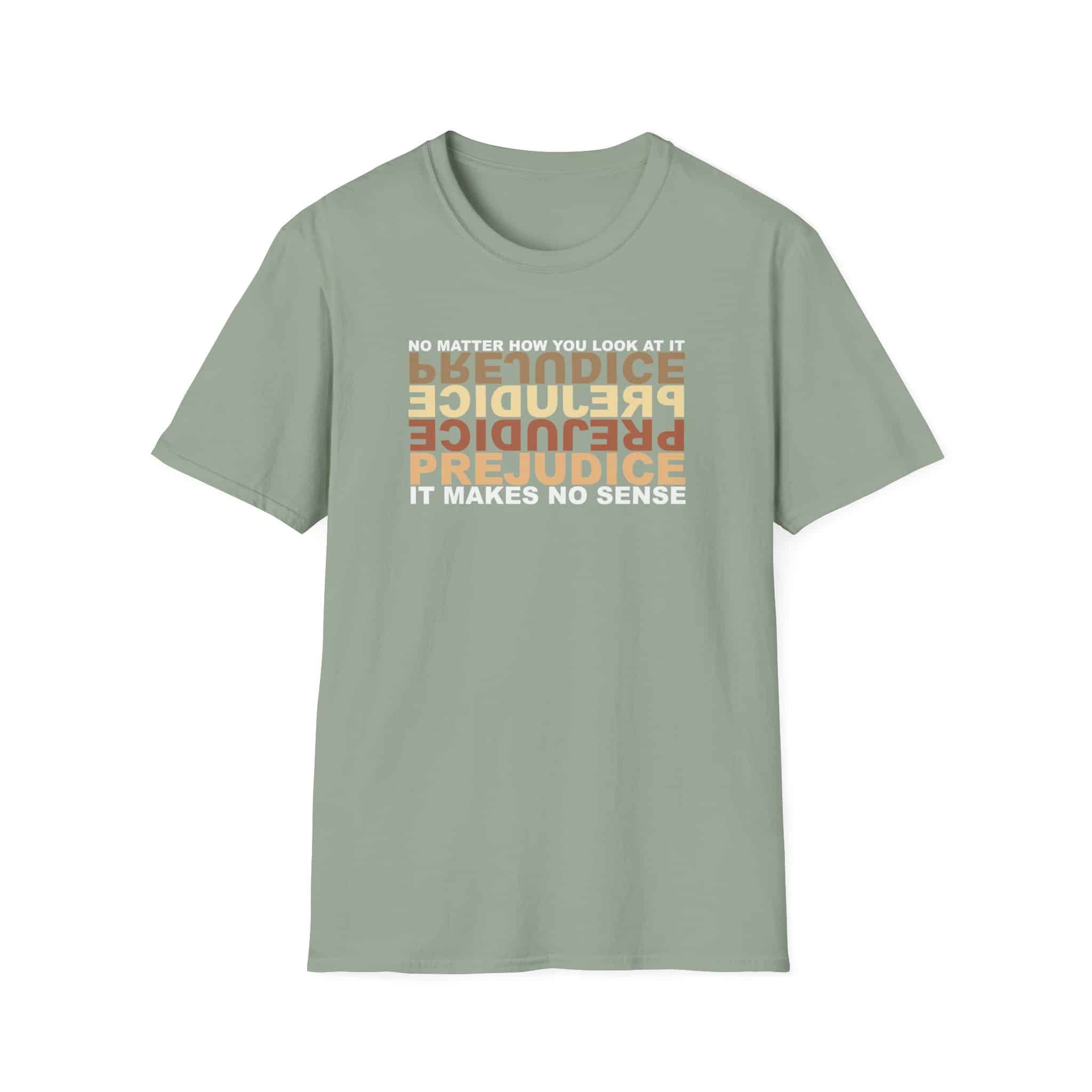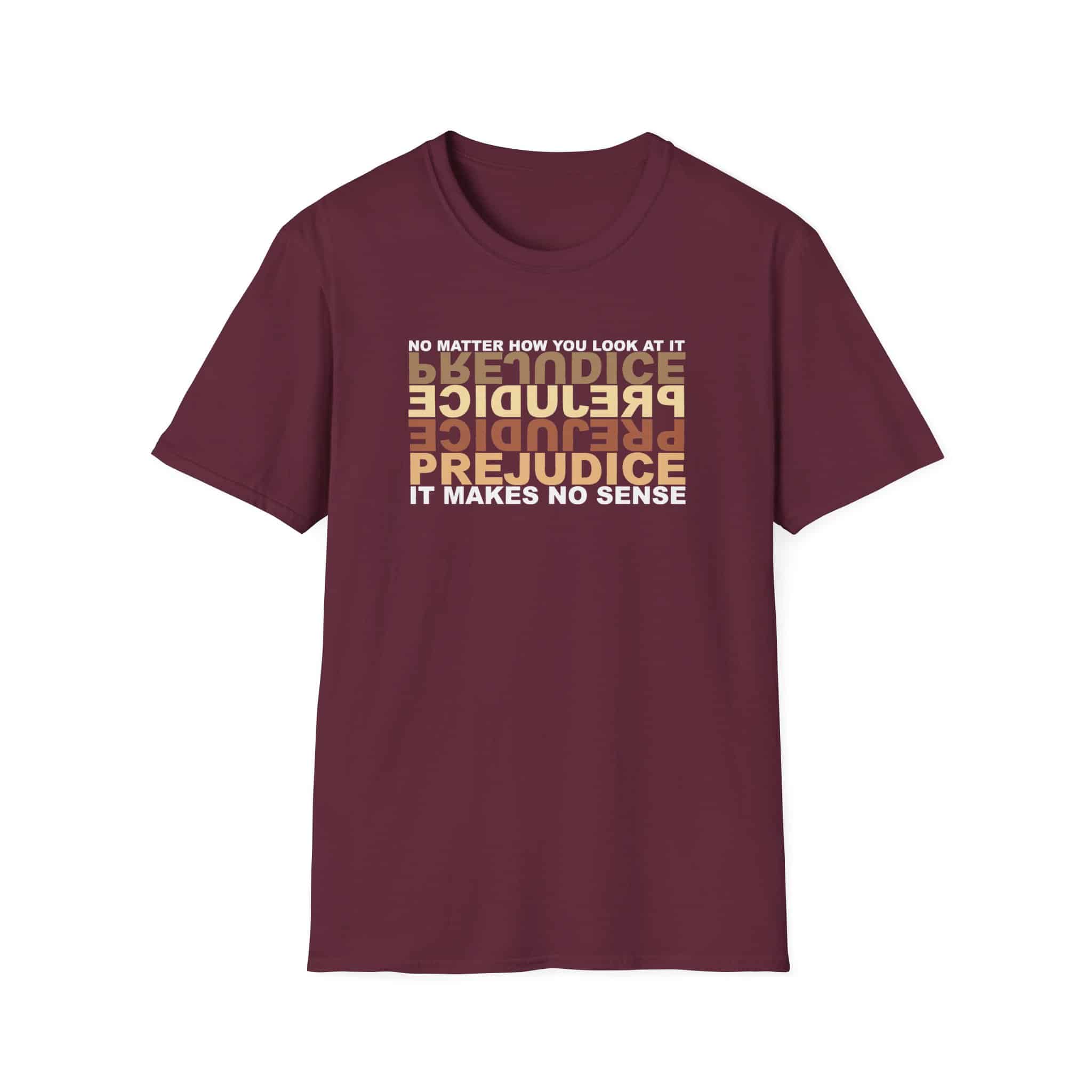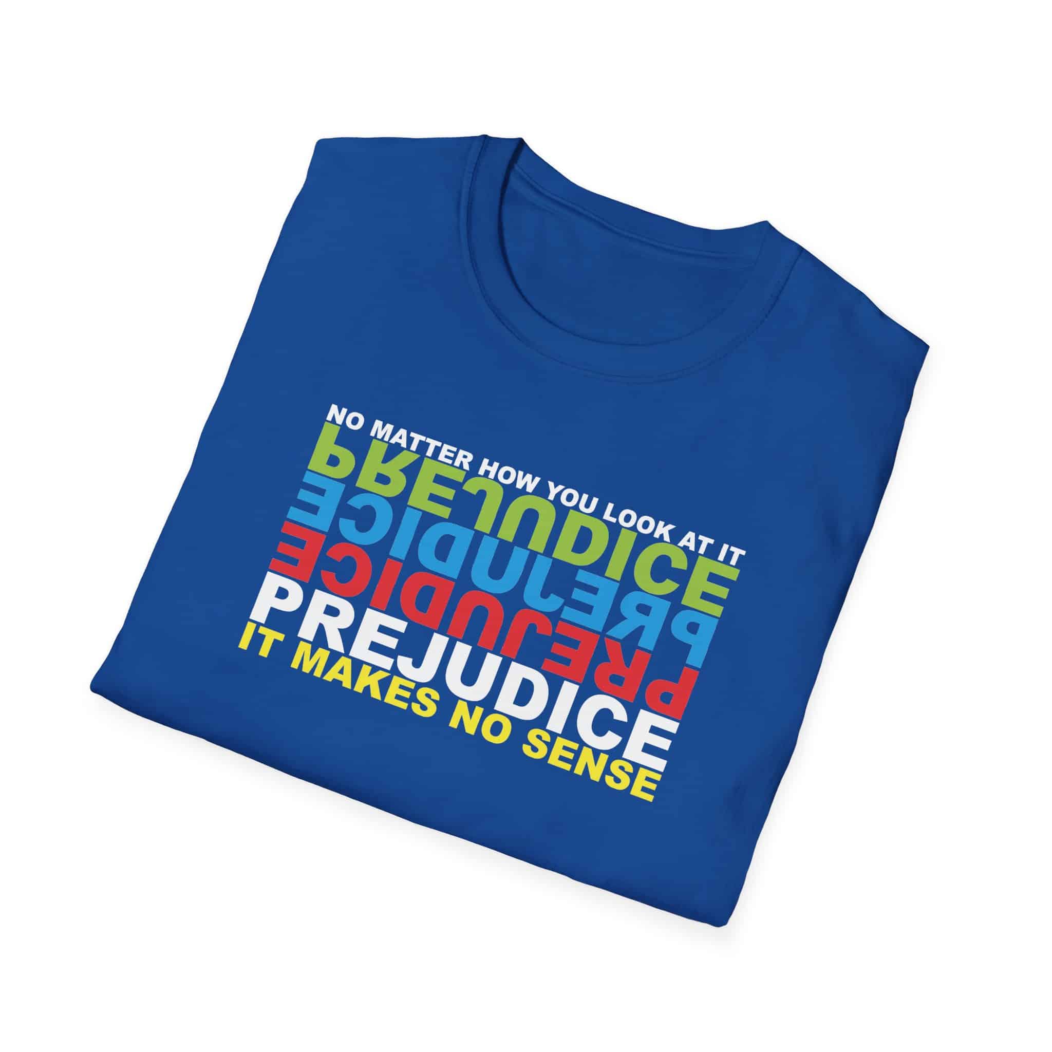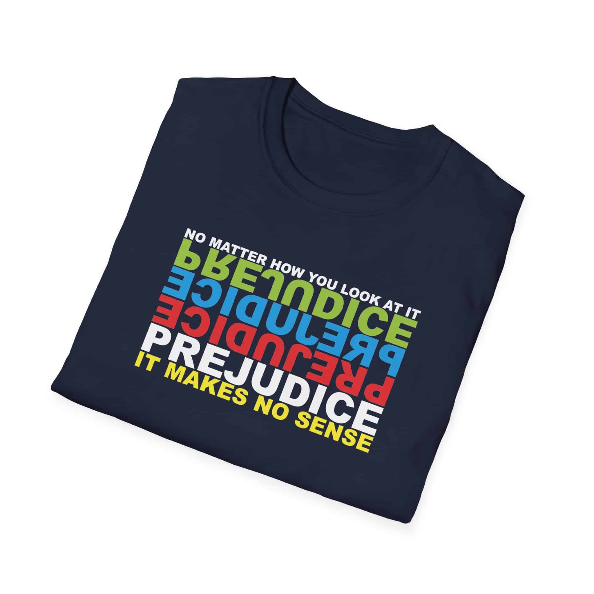 The different color options allow you to hint at different kinds of prejudice, or simply choose your favorite color of shirt and go with it!