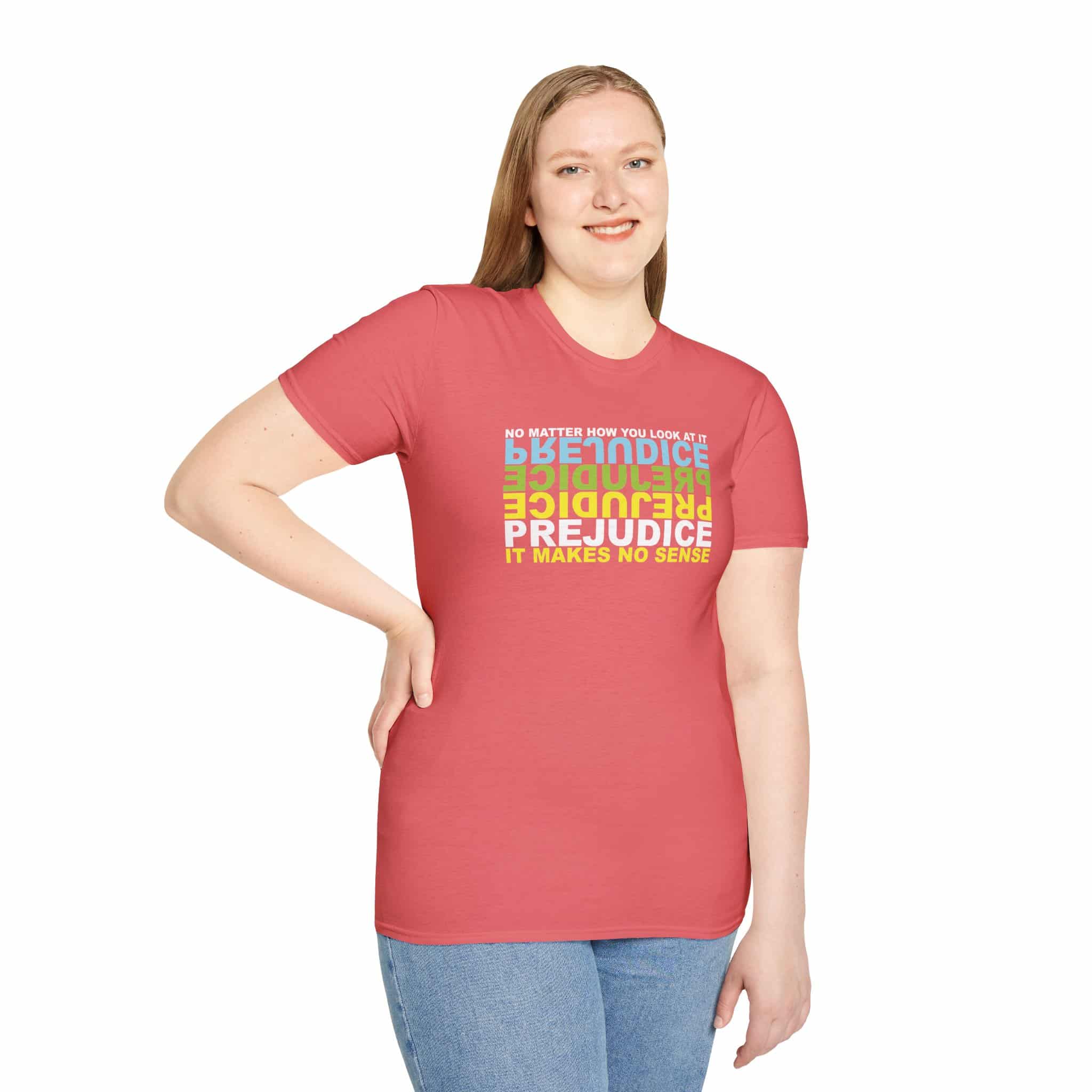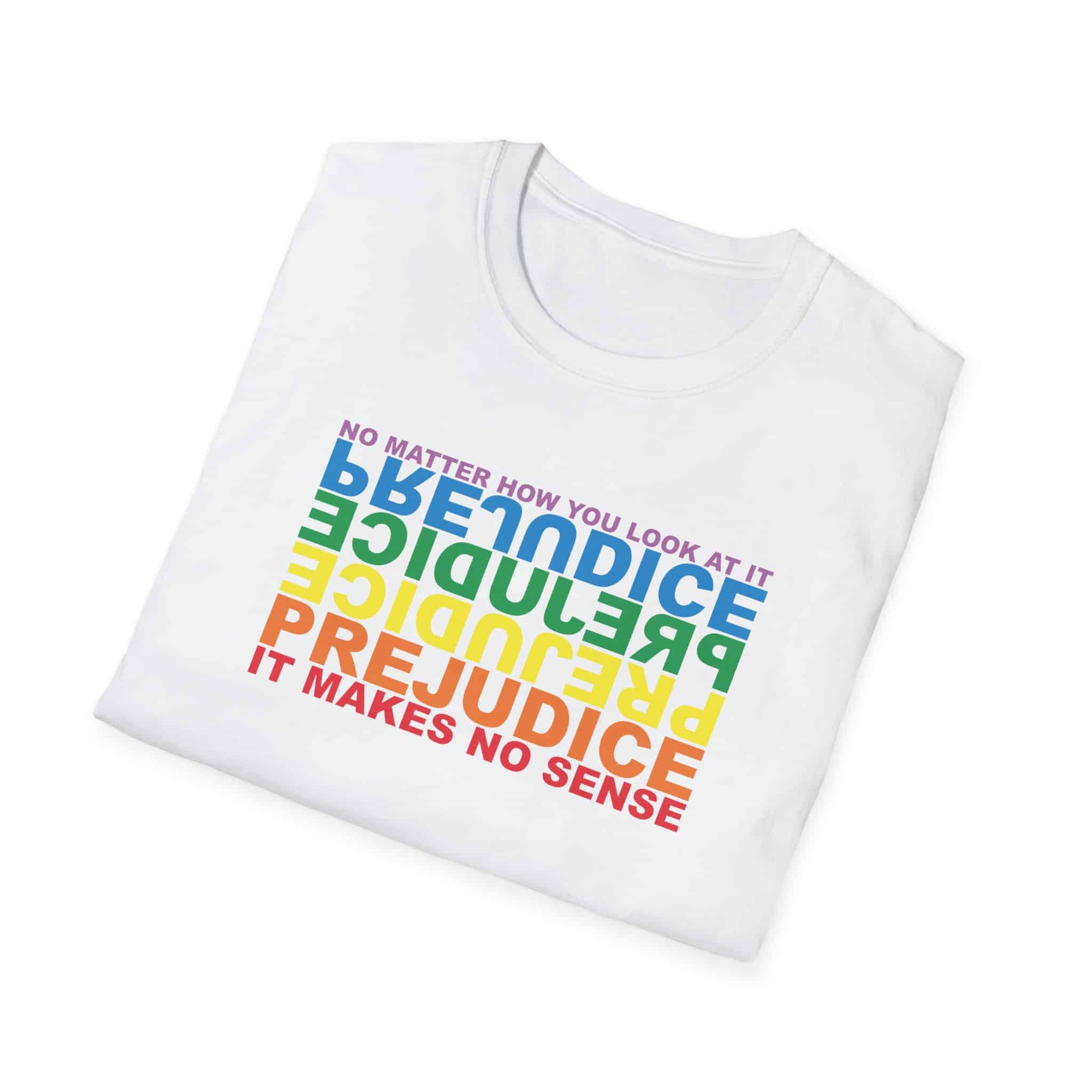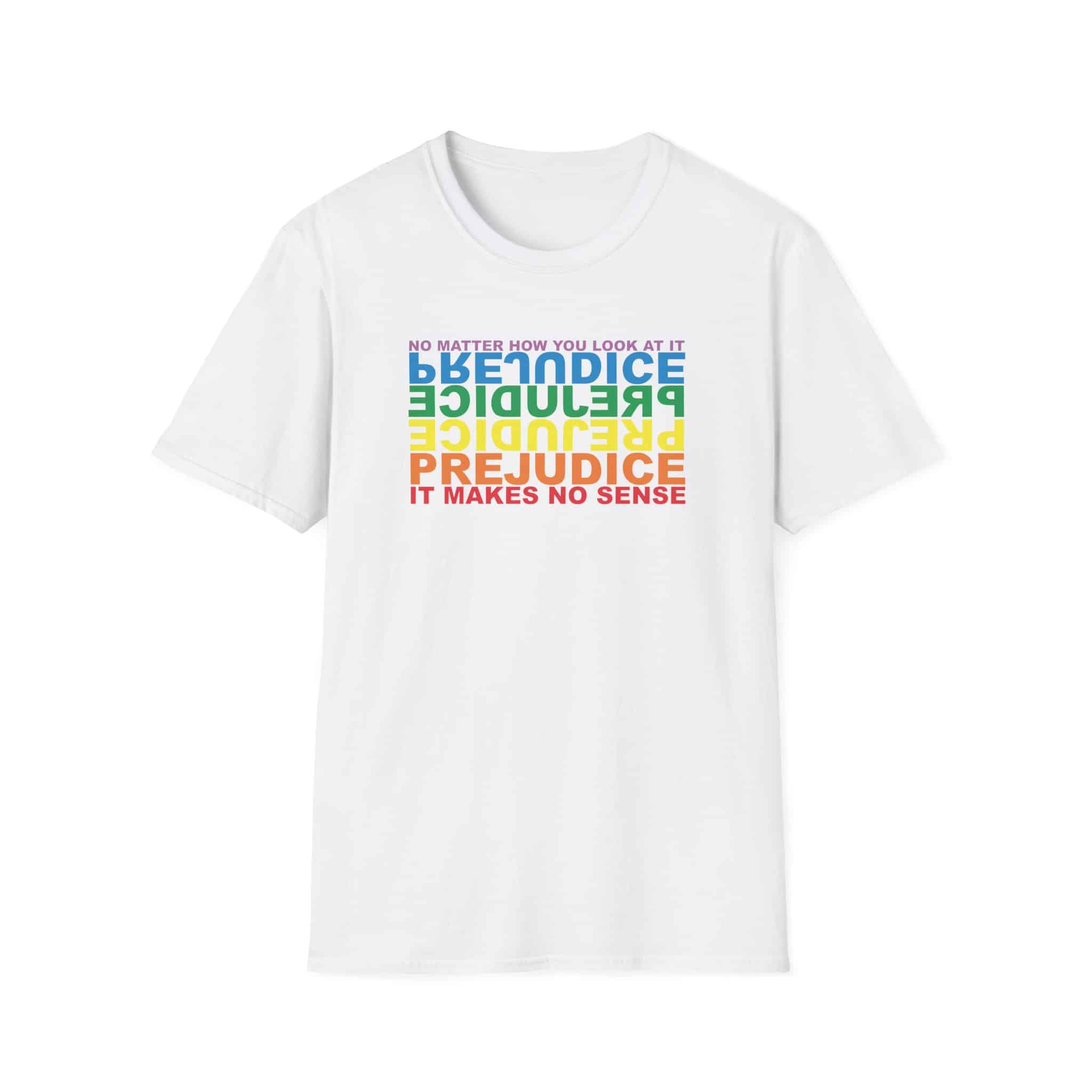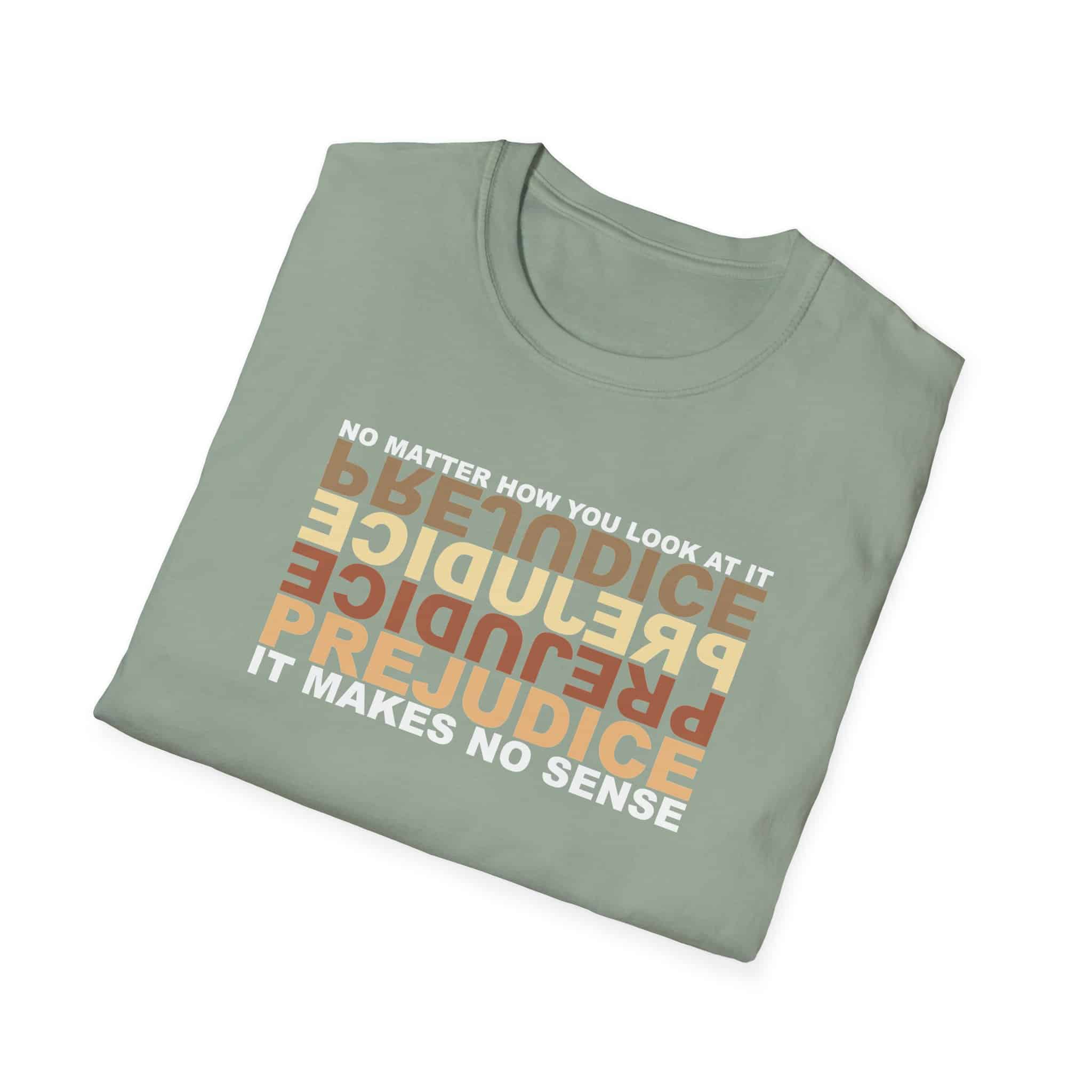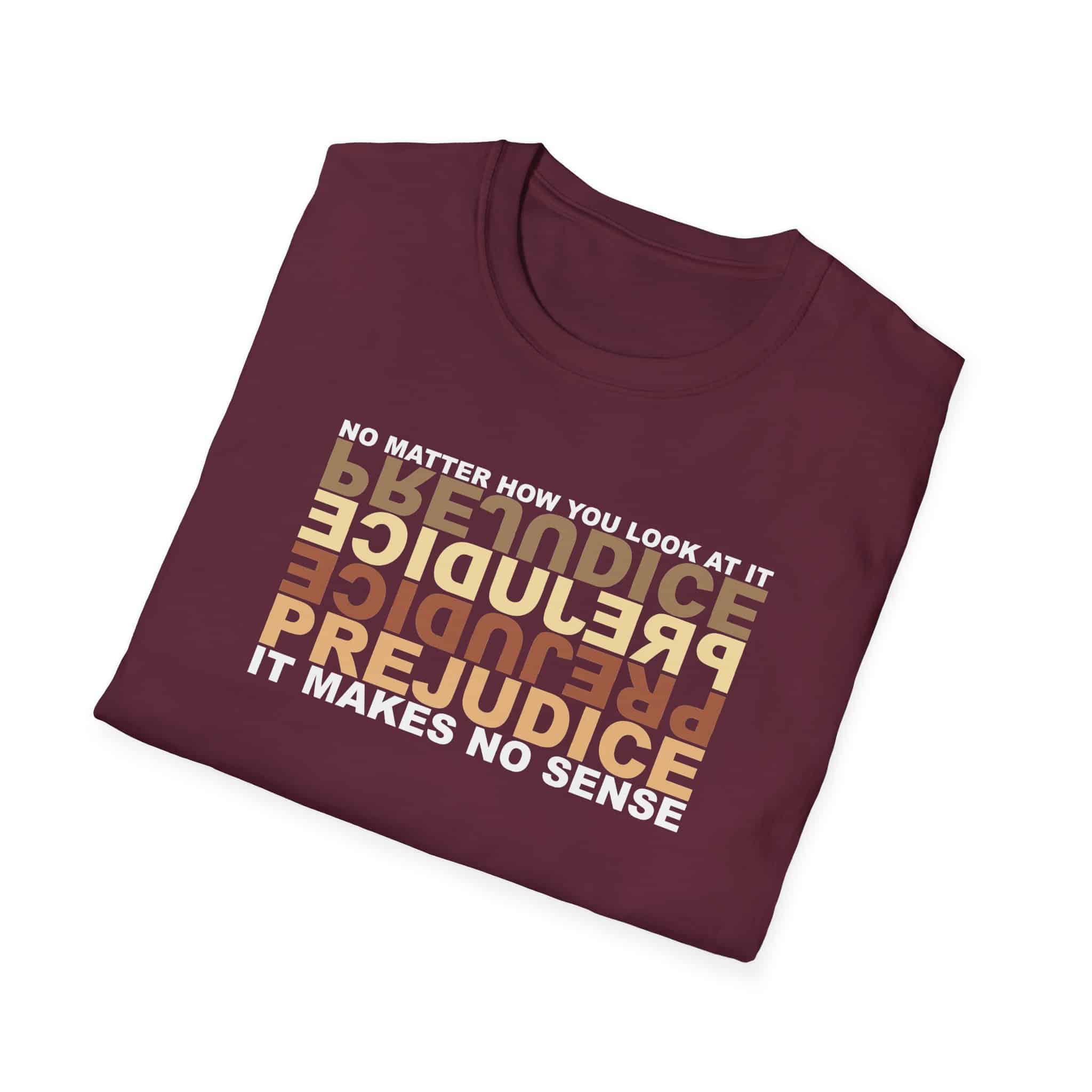 The different color options allow you to hint at different kinds of prejudice, or simply choose your favorite color of shirt and go with it!