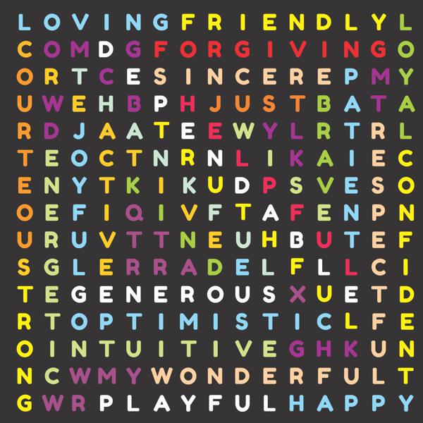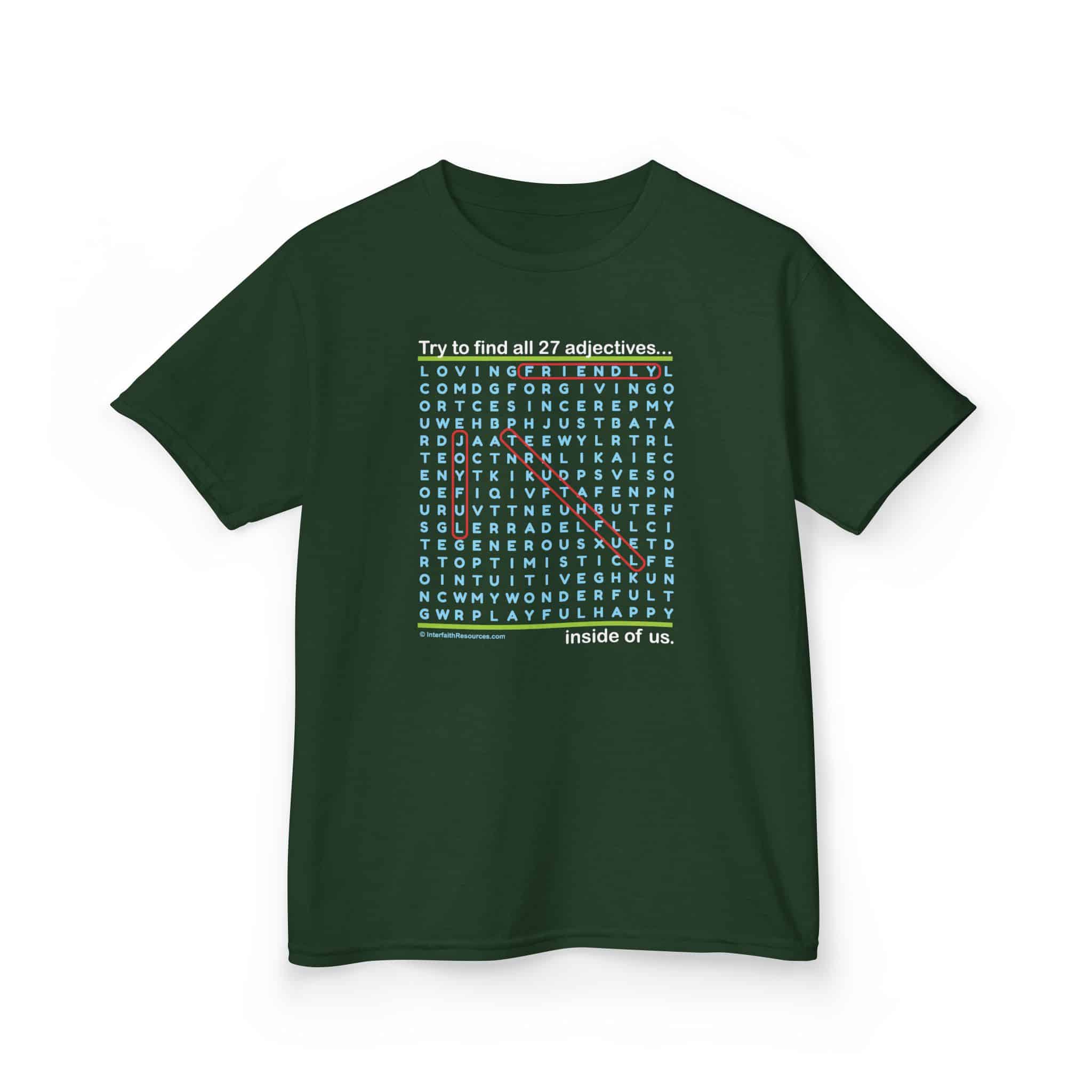 Word Searches are fun to do, and this one comes with an added message – all of the positive words on this shirt can also be found inside the person wearing and the person reading the shirt!