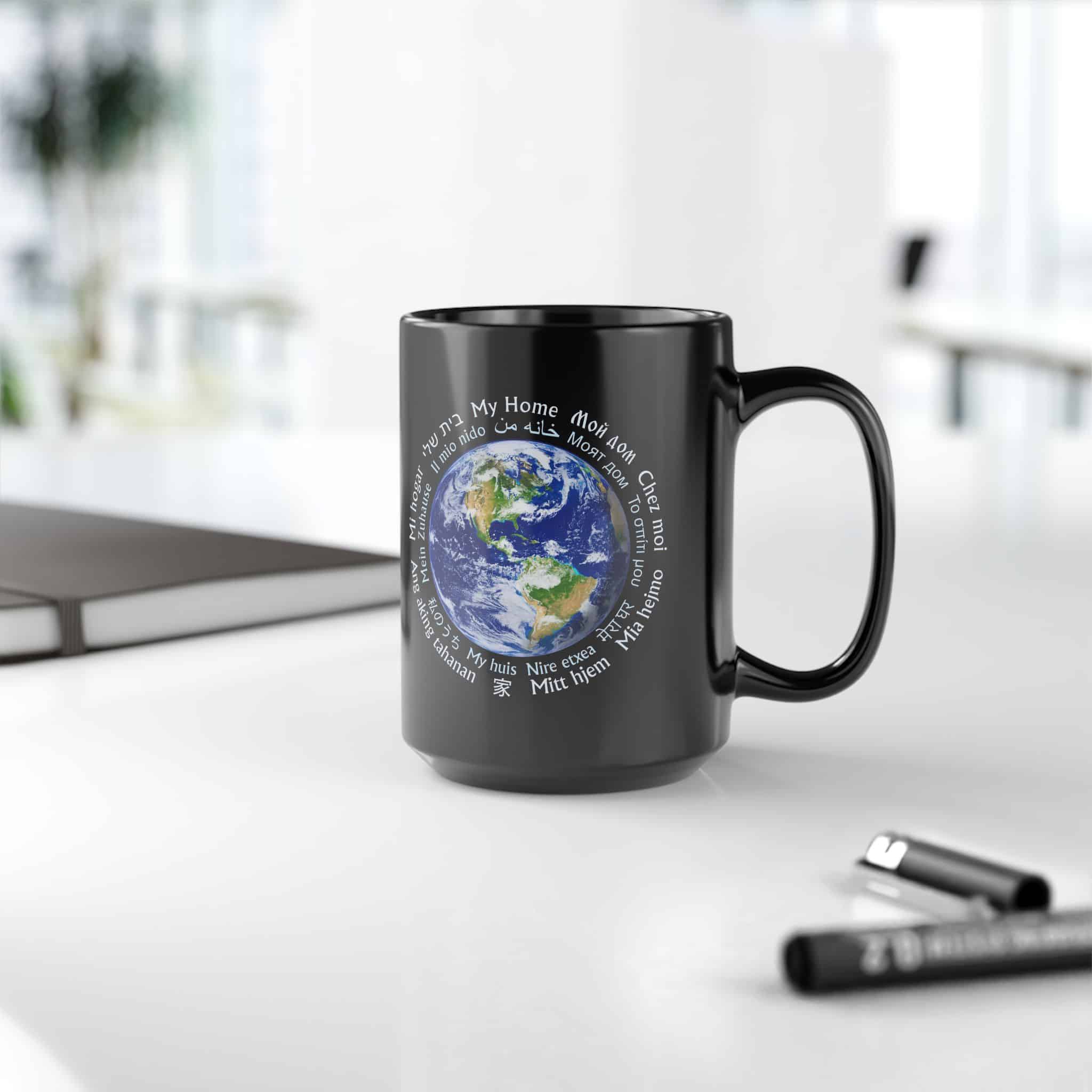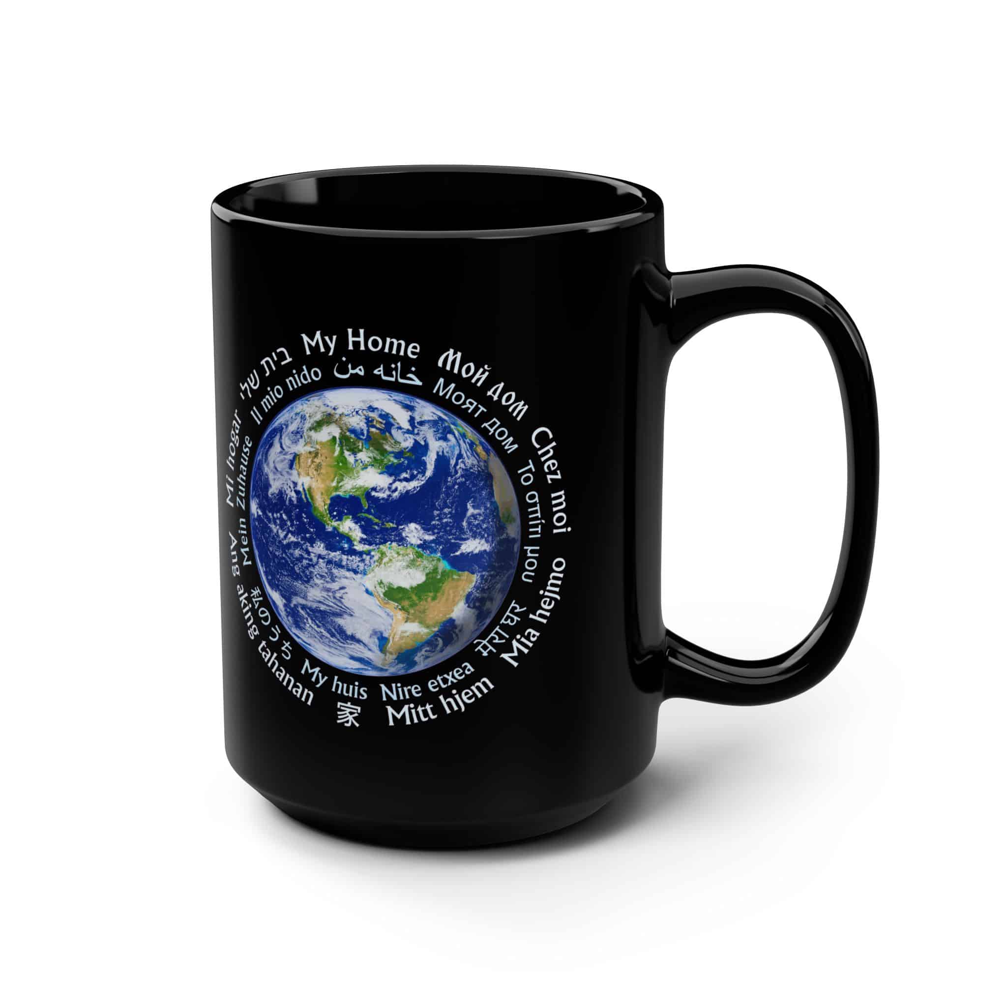 This large coffee mug says “World Citizen” on one side, and “My Home” in 18 different languages on the other. Between the two, they picture both Eastern and Western hemispheres, making this a truly world-embracing mug.