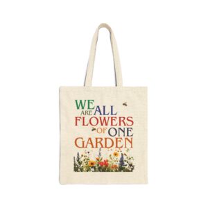 $2.00 – $60.00Price range: $2.00 through $60.00 Select options This product has multiple variants. The options may be chosen on the product pageWe Are All Flowers of One Garden Canvas Tote Bag